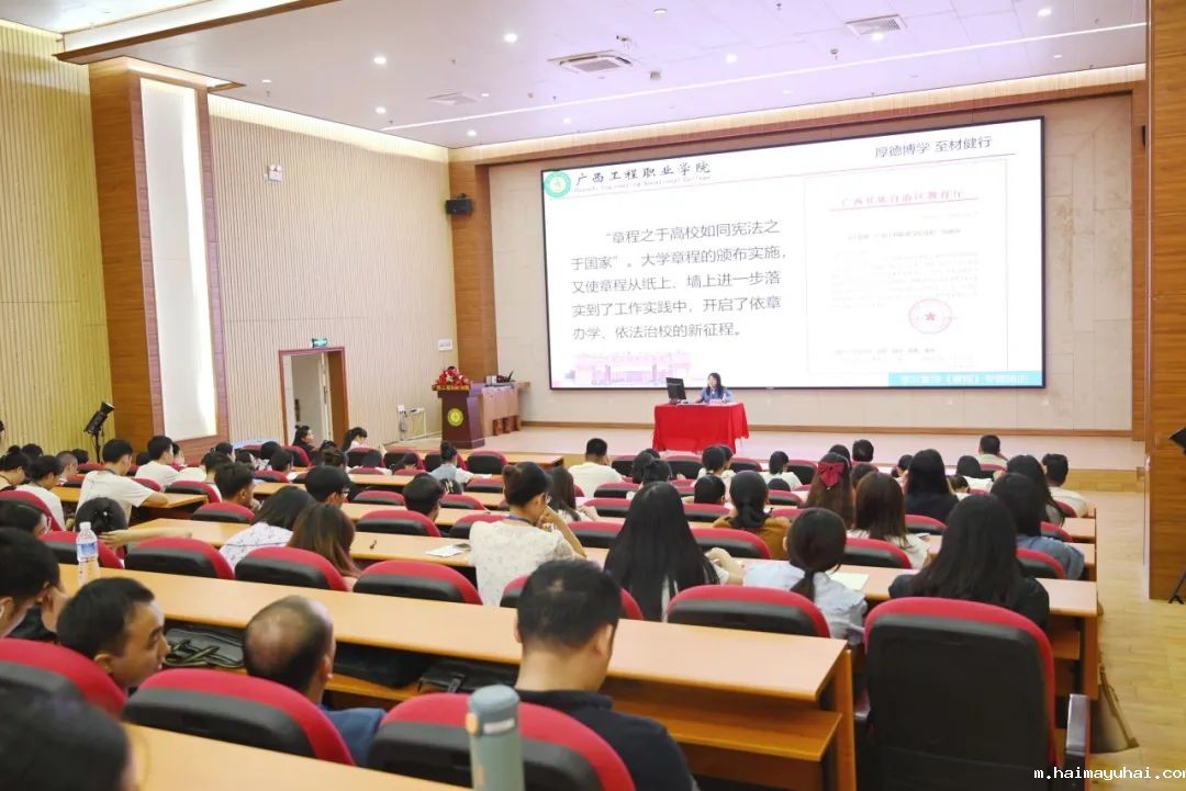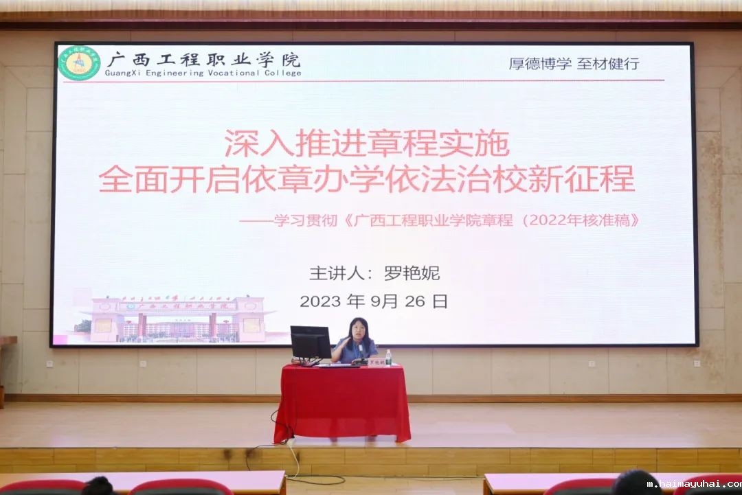 为学习宣传和贯彻落实学校章程的实施工作,切实保障学校章程在学校日常教育管理和办学实践中发挥重大作用,进一步促进办学水平高质量发展,9月26日下午,学校在图文信息大楼一楼学术报告厅召开题为“深入推进章程实施,全面开启依章办学依法治校新征程”的专题培训会,全体教师参会学习。校长罗艳妮作专题培训。此次培训是学校2023年秋季学期第三期教师常规培训。